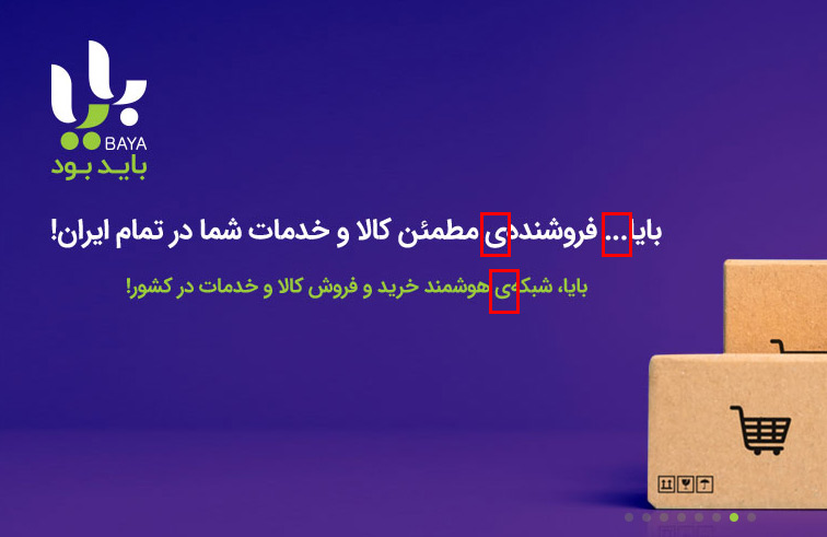 به جرات میتوان گفت سایتی که لوگوی خوبی ندارد احتمال ۹۵ درصد فاقد UI حرفه‌ای است. پیش تحلیل رابط کاربری بد نیست کمی هم از نگارش تیم بایا هم انتقاد کنیم.در اسلایدر سایت بایا اسلایدری را میبینیم که فاقد بدیهی‌ترین نکات نگارشی است.